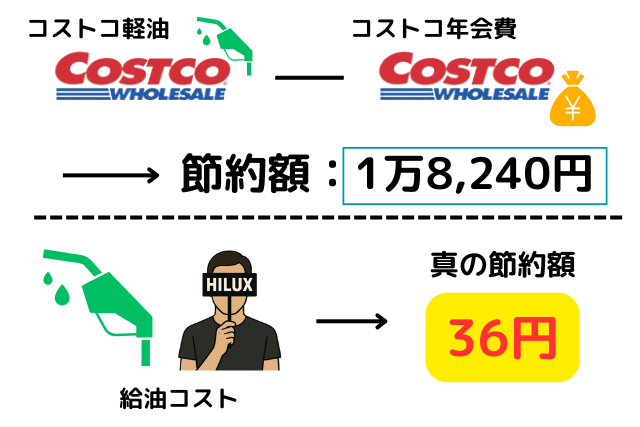 すると、コストコが自宅から片道68㎞離れていても246円の節約。