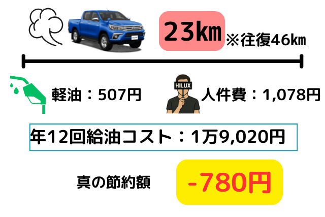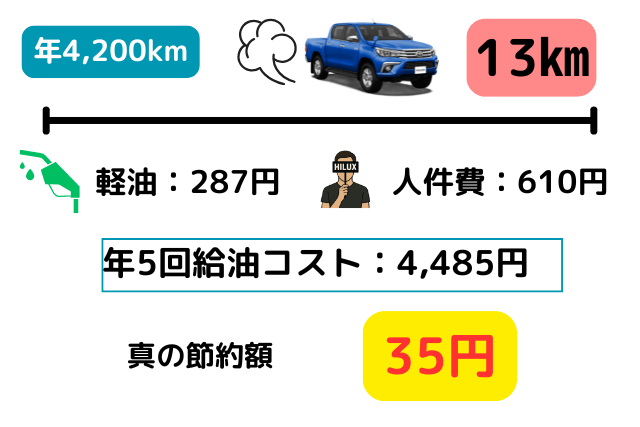 週末のみハイラックスを運転すると、年間ガソリン代はいくらなのか。
