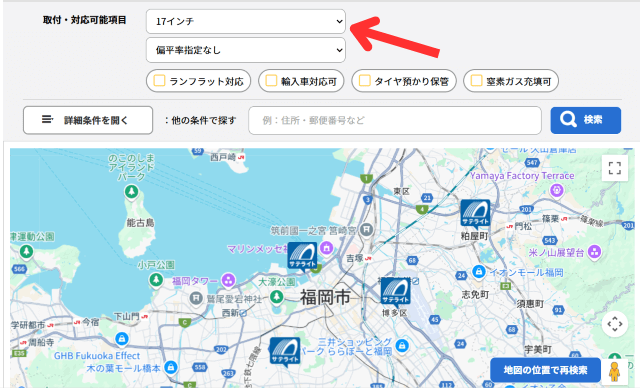 検索はタイヤサイズや条件でしぼって下さい。