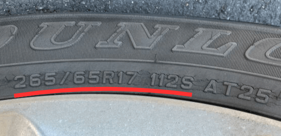 ハイラックスのタイヤに印字されたタイヤサイズ