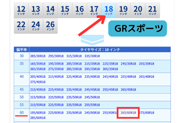 • GRスポーツ:265/60R18 110H