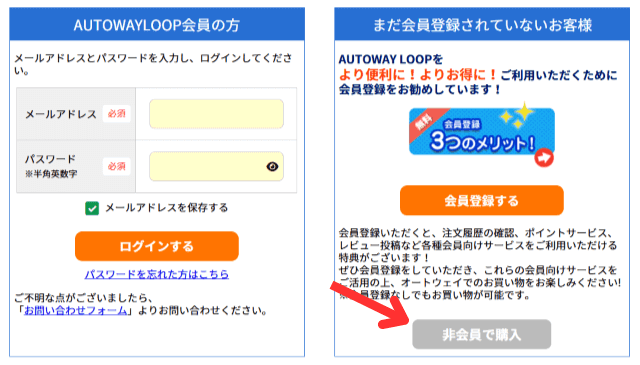 オートウェイでは会員登録せずに購入できます。